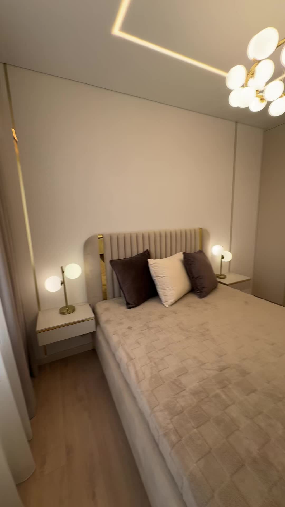 Світлий дизайнерський ремонт у спокійних тонах, виконаний із якісних матеріалів.