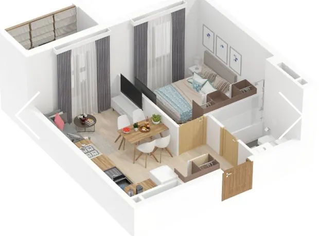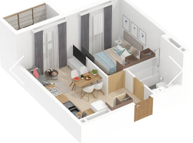 - Загальна площа 37 м² · житлова 10 м² · кухня 20 м²