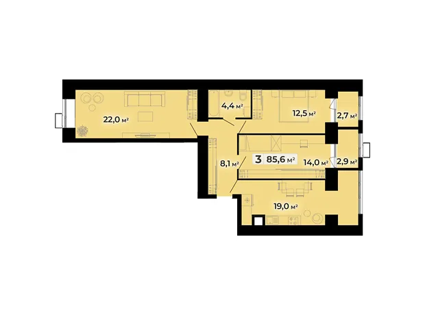 Площа 85.6 м²