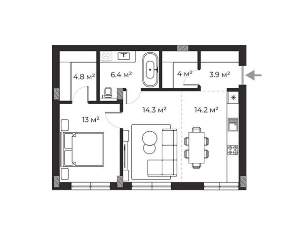 - Загальна площа 61.2 м²