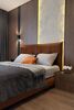 Спальня виконана в спокійних світлих тонах, зручна для відпочинку та облаштована під комфортне зберігання речей