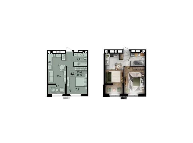 - Загальна площа 42.5 м²